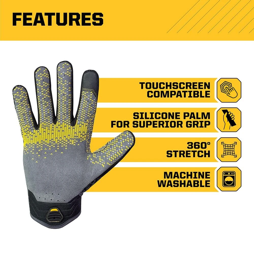 FIRM GRIP Dura-Knit work gloves blend the cutting-edge technology of 3D knit construction with durable protection to redefine the Next Generation of Work Gloves. Offering 360° stretch, the breathable Dura-Knit fabric is digitally optimized to mold to the hand for a comfortable-second-skin fit and reduce seams along fingers, a common glove failure point. The durable synthetic leather with grip enhanced palm delivers confidence to safely handle everything from large power tools to small parts requiring precision and dexterity. Whether on the jobsite or tackling the latest DIY project, Dura-Knit gloves are built stronger to last longer.