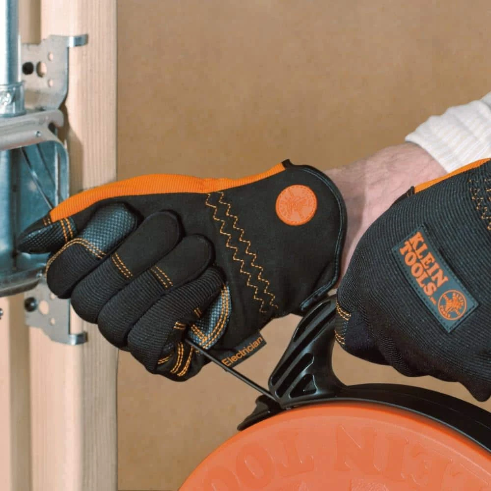 - Unique palm and finger material provides durability and slip resistance when pulling wire or cable