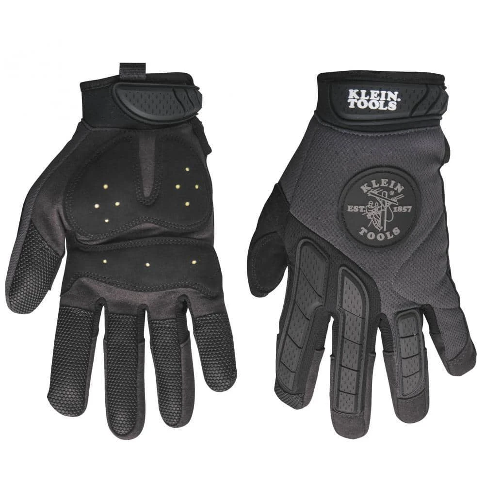 The Klein Tools Journeyman Grip glove offers protection and ample gripping capability in wet and dry conditions. D30 padding material in the palm absorbs impact. Great for wire pulling. Neoprene cuff and soft molded rubber closure with hook and look secures fit.
