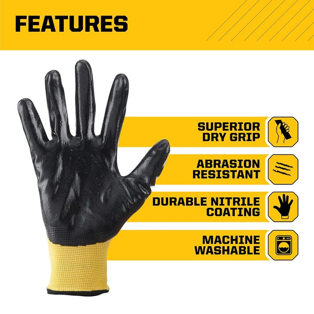 Nitrile coated gloves offer superior performance in a variety of applications and across a broad range of industries. They are lightweight, offer great dexterity and fit snug like a second skin. The nitrile coating on the palms and fingers delivers enhanced dry gripping power and control while creating a barrier of protection against liquids, epoxies, adhesives, greases and oils. The back-of-hand knit construction is designed to be breathable for all day wear and the snug fit means you will have natural movement, great dexterity and experience less hand fatigue. These reusable gloves are safe for people with latex allergies.