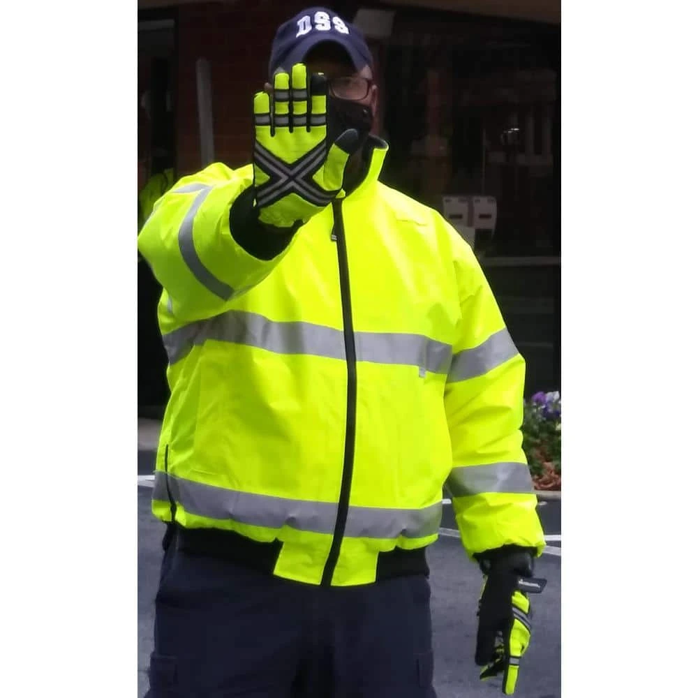 The patented high visibility reflective material provides stopping capability for 1250 ft. The Best Traffic Gloves on the Market!poly blend wickingreflective X on the palm and Arrow on back of hand COMFORTABLE poly wicking material and stretching compression reduce strain and fatigue. Visible at 1,250 lin. ft. (over 4 football fields). Full Glove with tactile function ANSI-ISEA 107 compliant. NO BULBS, NO BATTERIES. Reflective material doesn’t break or lose charge.