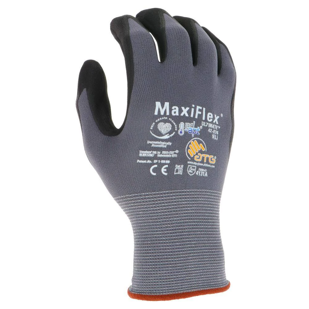 Now the iconic MaxiFlex gets even better thanks to the inclusion of the new AD-APT Cooling Technology. The MaxiFlex Ultimate gloves with AD-APT Technology deliver an exceptional grip and abrasion resistance, making them ideal for various tasks. Our patented micro-foam nitrile coating provides unmatched 360° breathability, setting a new standard for glove comfort. These gloves have a slim, form-fitting design that reduces hand fatigue and a knit wrist to keep dirt and debris at bay. These gloves also offer touchscreen compatibility, allowing you to operate your devices without removing them. The included AD-APT Technology is activated by the movement of your hands and increased temperature within the glove, releasing a natural cooling agent that keeps your hand dry and make them cooler.