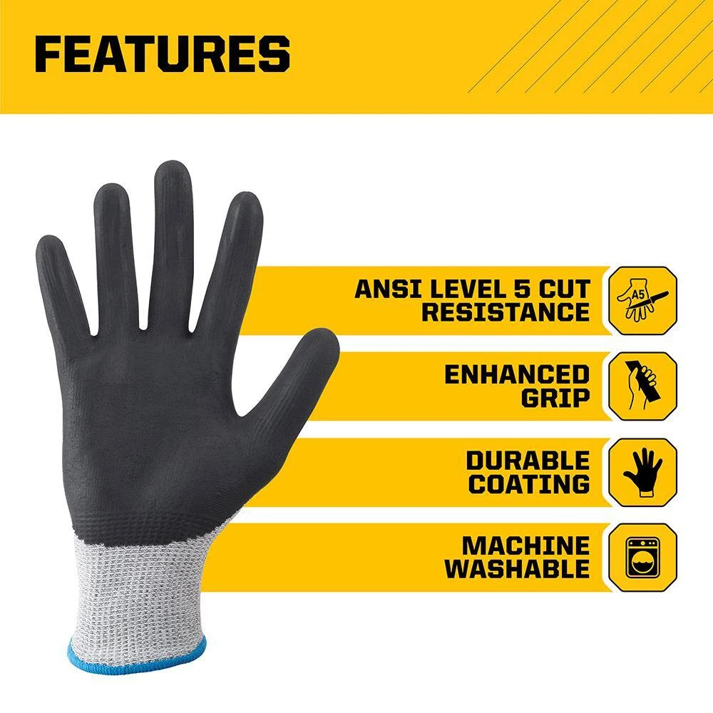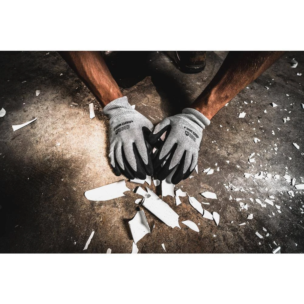 Firm Grip Precision Grip Cut-Resistant work gloves provide industrial grade, ANSI A3 level cut protection, resisting cuts and punctures while maintaining a superior grip in wet or dry conditions. The extremely durable coating protects your palm and fingers with EN388 level 4 abrasion resistance while the comfortable knit shell and cuff keeps out dirt and debris. Ideal for confidently handling everything from large tools to small parts, these are the perfect work gloves to keep in your toolbox, tacklebox, in your shop, or in your car.