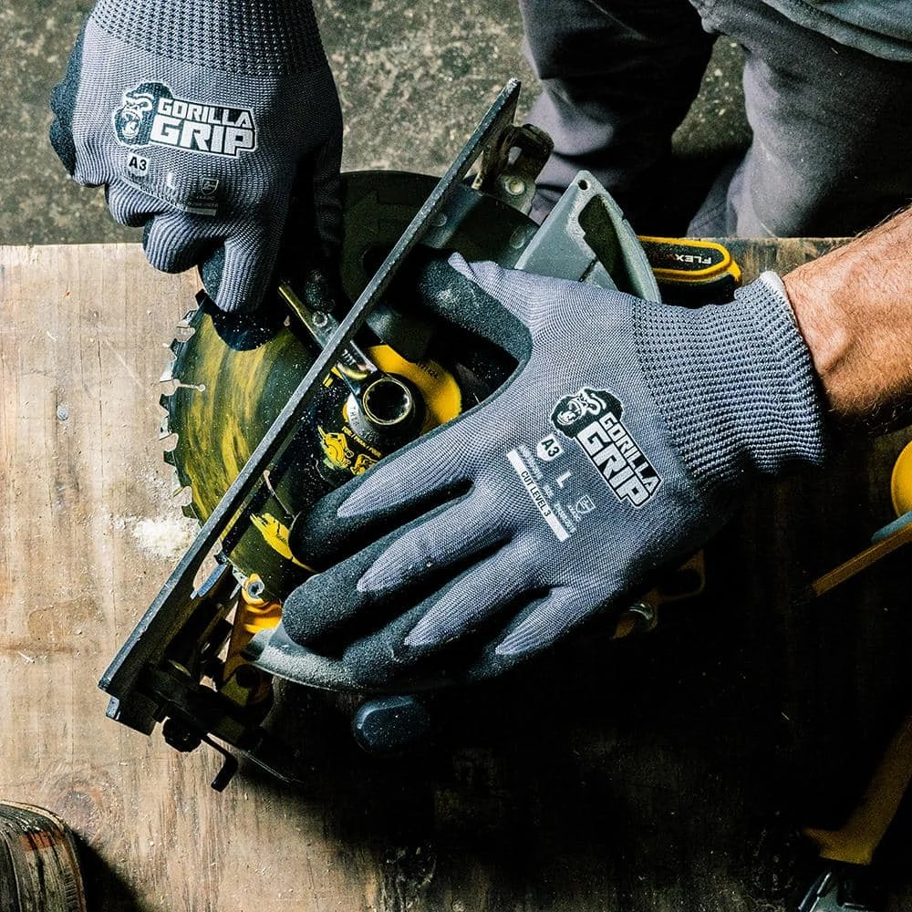 Gorilla Grip Precision Grip Cut-Resistant work gloves provide industrial grade, ANSI A3 level cut protection, resisting cuts and punctures while maintaining a superior grip in wet or dry conditions. The extremely durable coating protects your palm and fingers with EN388 level 4 abrasion resistance while the comfortable knit shell and cuff keeps out dirt and debris. Ideal for confidently handling everything from large tools to small parts, these are the perfect work gloves to keep in your toolbox, tacklebox, in your shop, or in your car.