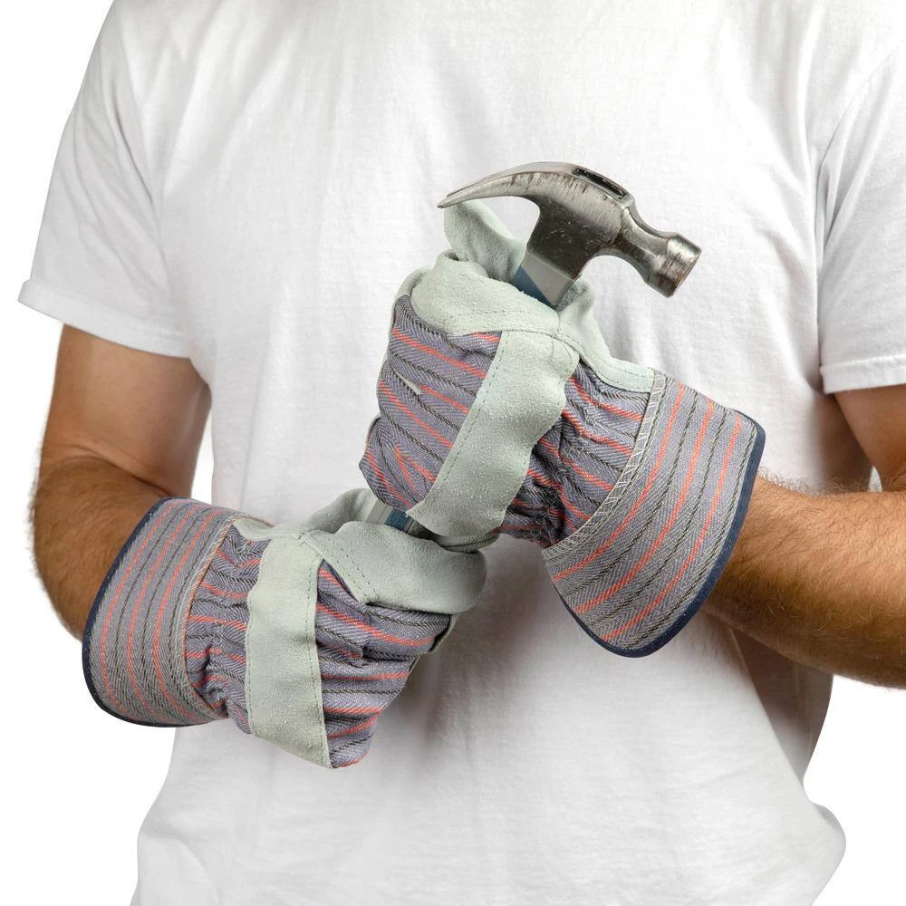 An economical full feature standard split cowhide leather palm Glove are a great protection and comfort in general-duty applications. Wing thumb construction. Starched safety cuff. 3 1/2 in. heavy starched safety cuff. Leather fingertips and knuckle strap. Pull tab for easy on and off, durable canvas back, wing thumb. Standard split cowhide leather palm gloves with rubberized safety cuff. 2 1/2-Inch safety cuff provides extra protection where you need it most. Durable split cowhide leather palm, index finger, fingertips and knuckle strap.