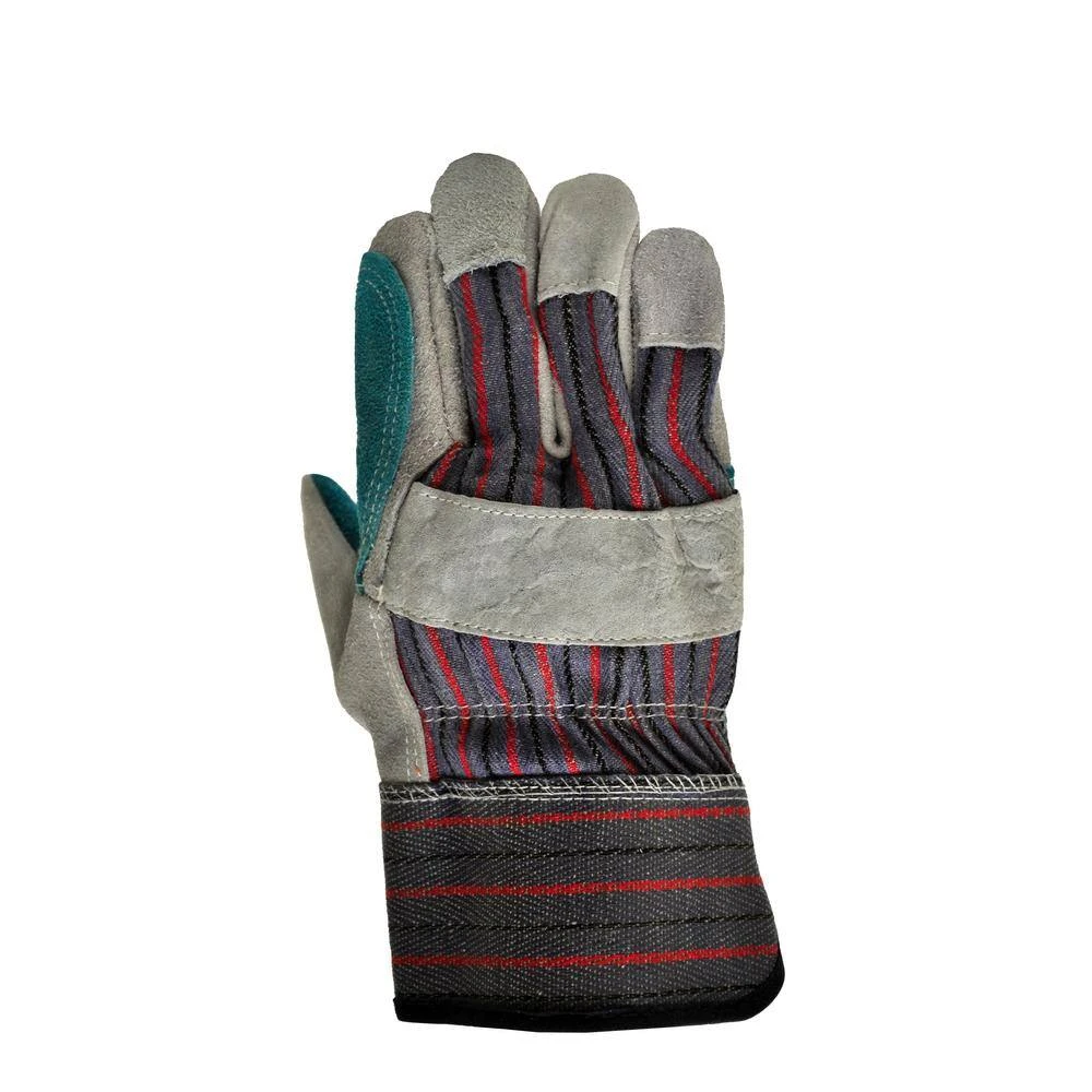 - Premium suede double palm and index finger work gloves with 2 and 1/2 rubberized safety cuff