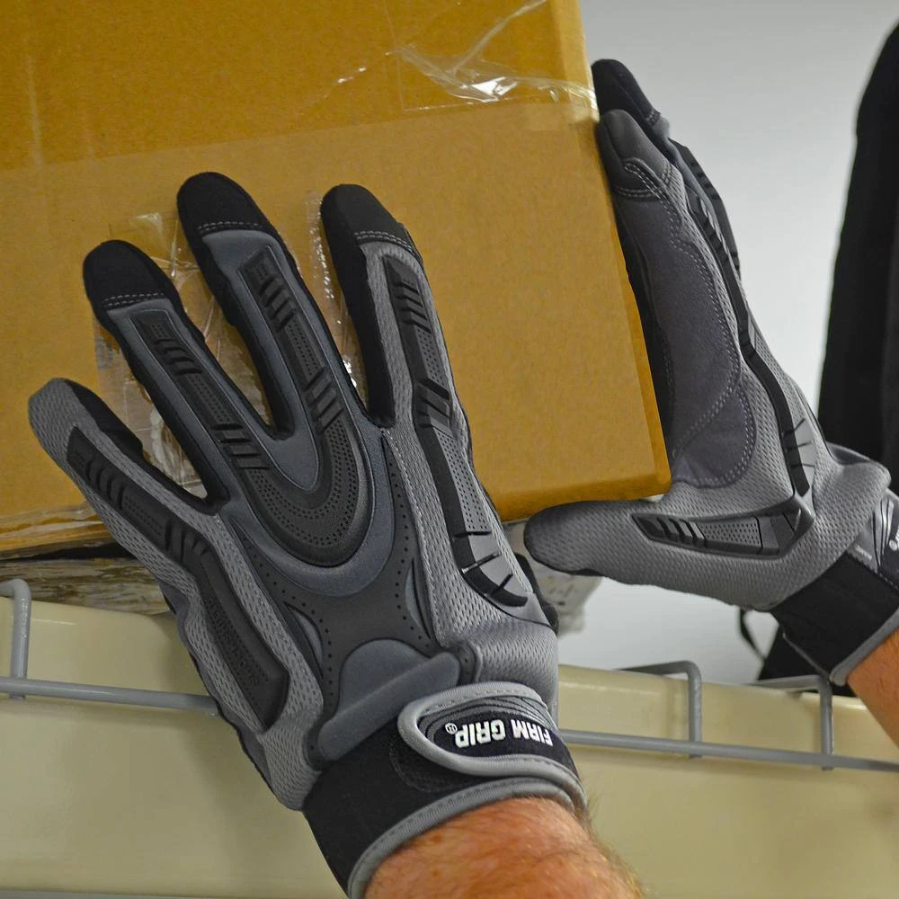 Firm Grip Pro Protect Heavy Duty Gloves are designed for total protection on the toughest jobs. Get maximum back of the hand protection with rubber impact panels that keep your knuckles and fingers safe. Padded foam palm absorbs shock and vibration. And heavy-duty spandex stretch panels between fingers add comfort and ventilation. On a job site that requires heavy duty protection? This glove has you covered.