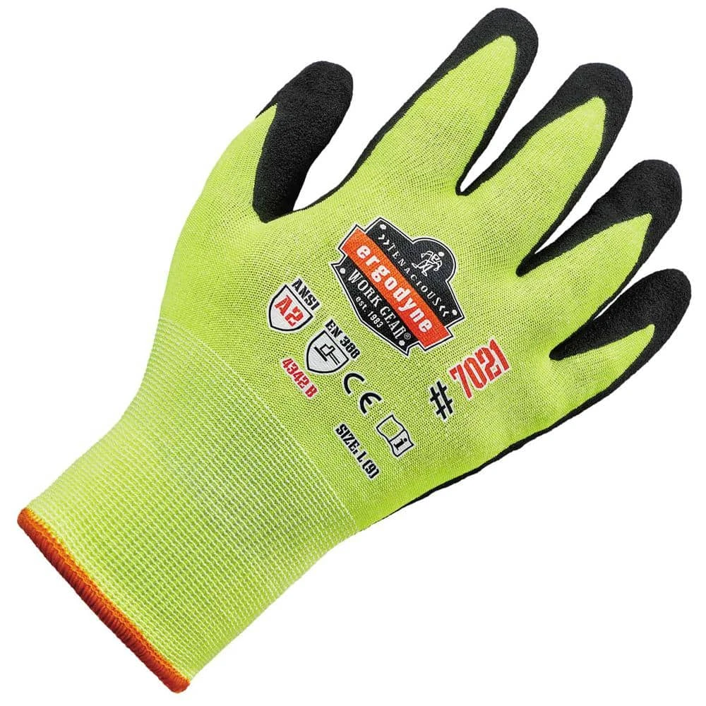Keep your hands safe while working with these ProFlex 2X-Large Lime Hi-Vis Nitrile-Coated Cut-Resistant Gloves A2 Level WSX, Wet Grip. They are designed to resists cuts and punctures. Use these in dry environments. They will give you a firm grip while you complete tasks.