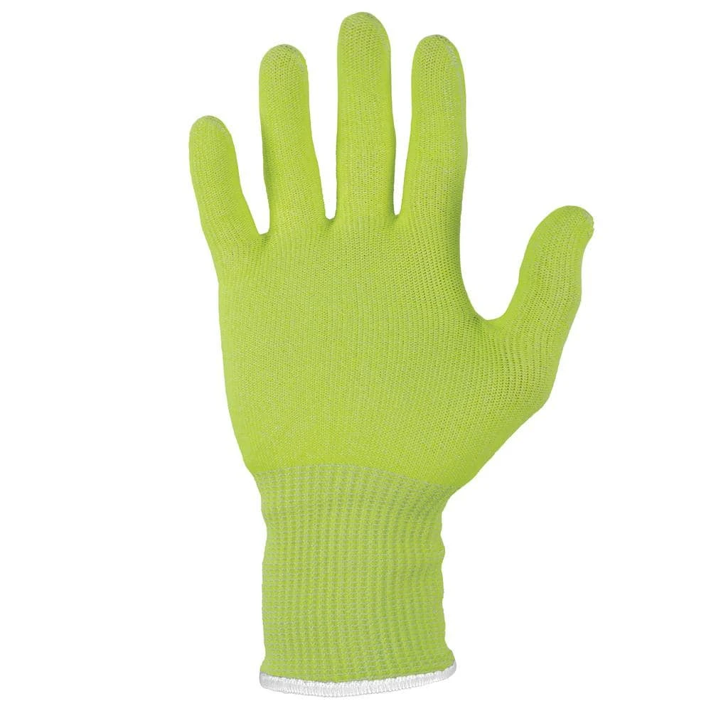 ProFlex 7040 ANSI/ISEA 105-2016 Level A4 / EN 388 Level 5 Cut-Resistant Food Grade Gloves are made with breathable and non-irritating TenaLux yarn for maximum comfort that does not compromise protection. Unlike other anti-cut technologies, TenaLux yarn is constructed of high-performance polyethylene (HPPE) fibers to achieve a high level of cut resistance without glass or steel. These cut-proof gloves are tested to FDA CFR 175.300 for total extractive residues. This approval means the gloves will not contaminate food at any process point-including prepping, packaging and transporting. The lightweight knit of the TenaLux has 360° breathability and a cool-to-the-touch feel to prevent sweaty hands and overheating. The seamless knit cuff fits comfortably snug, keeping dirt and debris from getting into gloves. The hi-vis color enhances visibility for safety when working with knives and other sharp objects.