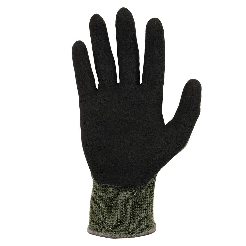 The ProFlex 7042 Nitrile Coated Cut-Resistant Gloves are made with heavy-duty aramid fiber for heat handling and ANSI/ISEA 105-2016 level A4 cut resistance, plus durable sandy nitrile coated palms for high strength grip and enhanced dexterity. Unlike other bulky cut-resistant gloves, the 18-Gauge aramid fiber knit protects hands from heat and cuts while maintaining a soft, lightweight and flexible form fit. The snug knit cuffs are longer than most on the market, a feature that enhances fit and extends protection while keeping dirt and debris out. EN407 LEVEL 1 CONTACT HEAT RESISTANCE These work gloves are tested to EN407 level 1 contact heat resistance for safety when handling high temperature materials. A measure of how well the glove will insulate hands from heat, level 1 contact heat resistance indicates the glove can withstand temperatures up to 100° C/212° F for up to 15 seconds.