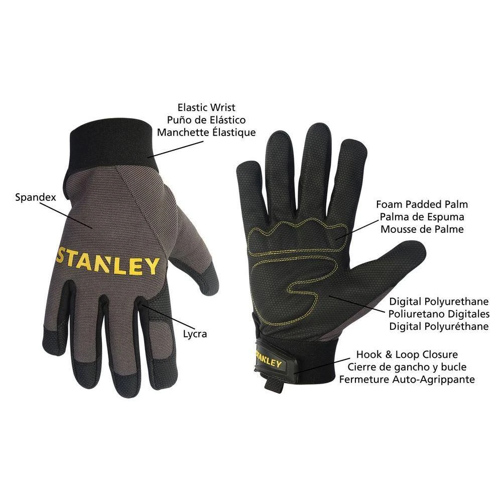 This Stanley glove offers a generous amount of foam padding for increased grip and comfort, a breathable stretch spandex back and an elastic wrist with an adjustable hook and loop closure. Needless to say, this digital polyurethane palm is designed with you in mind. Give the gift of safety to your friends or stash a pair in your toolbox.