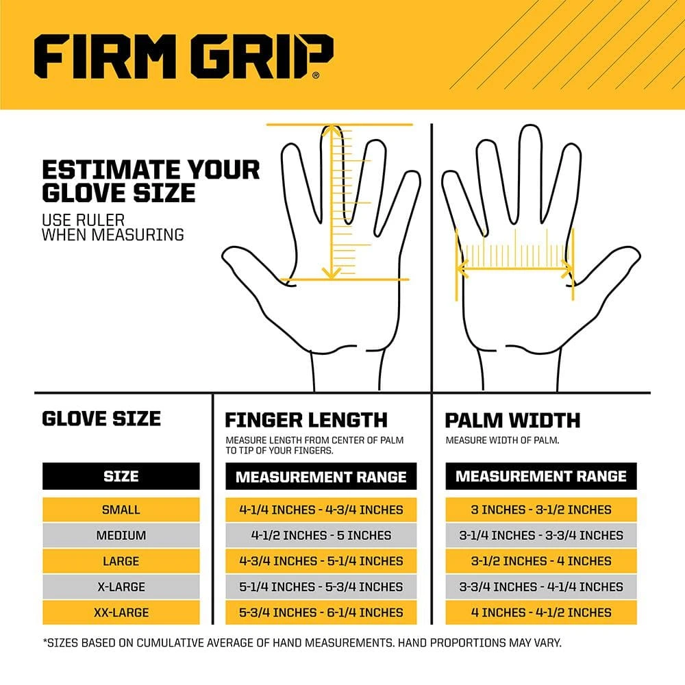 Firm Grip Utility gloves feature reinforced high wear points such as fingertips, padded knuckles, and thumb saddle protection for durability and strength. The quick fit, elastic cuff design allows you to quickly take the gloves on and off as needed. Affordable performance and continuous comfort help keep your hands protected for the long haul.