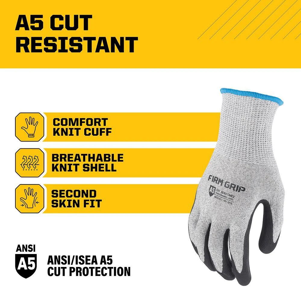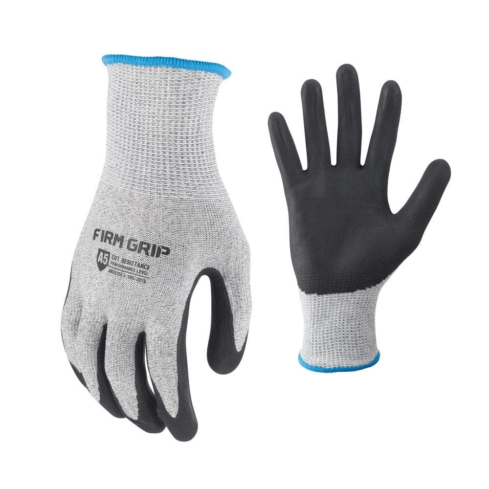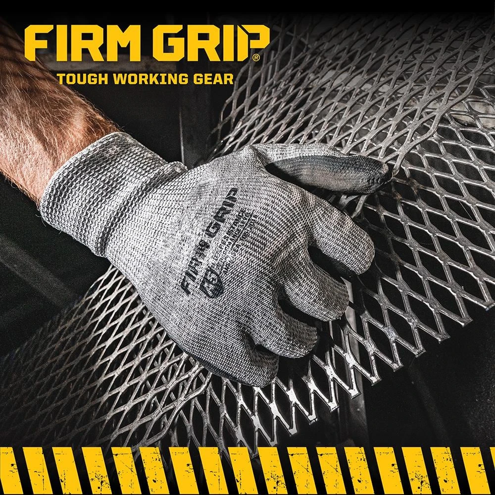 Firm Grip Precision Grip Cut-Resistant work gloves provide industrial grade, ANSI A3 level cut protection, resisting cuts and punctures while maintaining a superior grip in wet or dry conditions. The extremely durable coating protects your palm and fingers with EN388 level 4 abrasion resistance while the comfortable knit shell and cuff keeps out dirt and debris. Ideal for confidently handling everything from large tools to small parts, these are the perfect work gloves to keep in your toolbox, tacklebox, in your shop, or in your car.