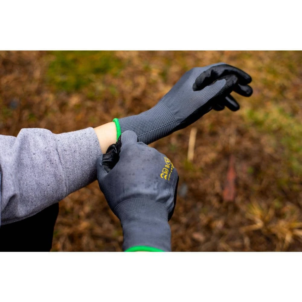 The new generation of work gloves. Ultra-Cool and Very Comfortable to Wear, Breathable Coating Keeps Hands Cool and Dry. The Ultimate in Super Light Breathable Ultrafine Micro-Foam Nitrile Dipped Nylon Gloves. COMPATIBLE and RESISTANCE: Micro-foam nitrile coatings are compatible with light oils and will provide a good grip and excellent abrasion resistance. knit wrist helps prevent dirt and debris from entering the glove. 100% Silicone-free. 360° breath-ability-patented micro-foam nitrile coating offers 360° breath-ability, making it the most breathable glove on the market today. 25% thinner-than most foam nitrile gloves on the market while offering twice the mechanical performance. Every Gardner’s Best Friend, put them through a long day of digging, carrying rocks, pulling weeds OPTIMIZED GRIP: The micro-cup finish allows for a controlled grip. form, fit and feel-mimics the