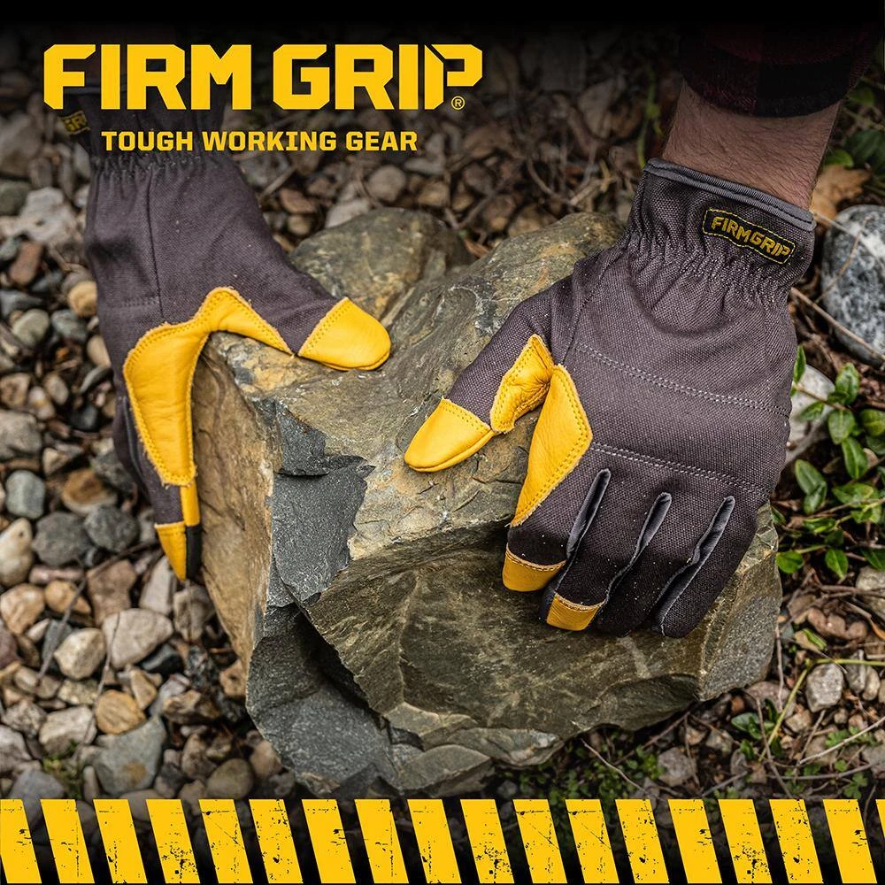 Firm Grip Hybrid Duck Canvas work gloves are durable, abrasion resistant, and designed for all-day comfort. Ideal for a wide variety of jobs, the breathable, cotton canvas naturally conforms to the hand with wear and dries quickly after working in wet conditions without becoming stiff. The palm is reinforced with grain cowhide for added durability and abrasion resistance with ventilation holes that promote airflow for added breathability.