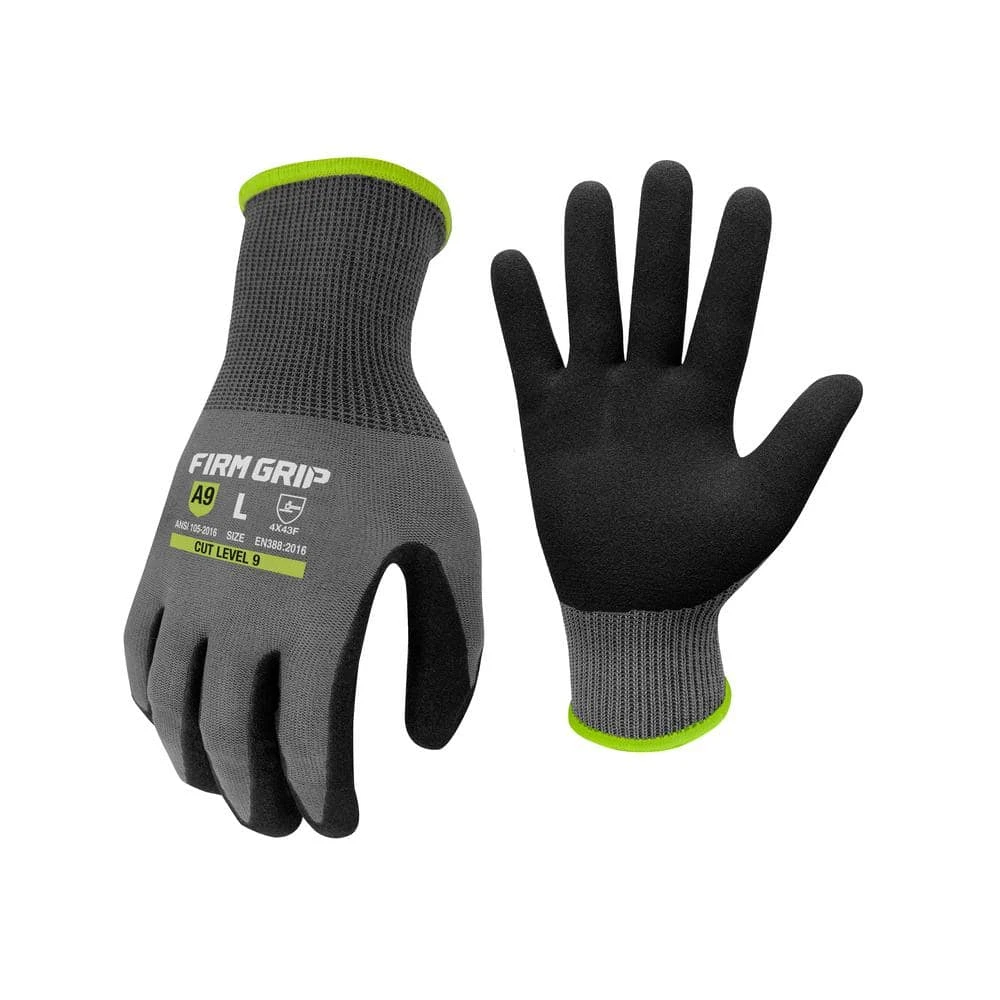 FIRM GRIP Precision Grip Cut-Resistant work gloves provide serious industrial grade, ANSI A6 level cut protection, resisting cuts and punctures while maintaining a superior grip in wet or dry conditions. The extremely durable coating protects your palm and fingers with EN388 level 4 abrasion resistance while the comfortable knit shell and cuff keeps out dirt and debris. Ideal for confidently handling everything from large tools to small parts, or working with sharp blades, rough metal, or glass, these are the perfect work gloves to keep in your toolbox, tacklebox, in your shop, or in your car.
